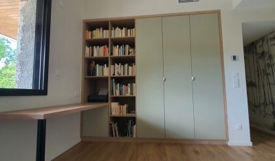 - Conception et pose de cuisine, dressing, bibliothèque, claustra, escalier, porte et parquet